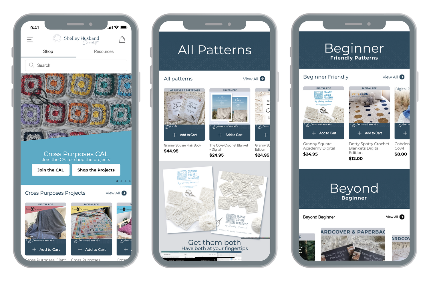 My app has got you covered. Head to my Granny Square Circle. Need that YouTube video how to do “that” stitch? Tap, tap and you’re watching it. Yearning for that new pattern? Swipe, tap, done. What was that thing Shelley posted on her blog last week? Bam! You're reading it. Need help? Tappity tap and ask away.
